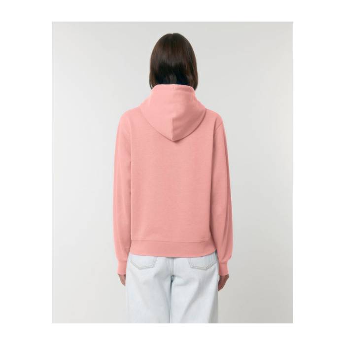 Elegáns uniszex kapucnis pulóver, amely dupla rétegű kapucnival, színben harmonizáló húzózsinórokkal és kenguruzsebbel rendelkezik. Tartós, ikertűs varrással készült, tiszta, kezeletlen természetes nyers pamutból.