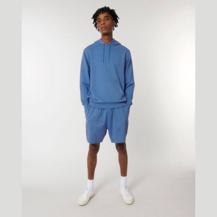 Elegáns uniszex kapucnis pulóver, amely dupla rétegű kapucnival, színben harmonizáló húzózsinórokkal és kenguruzsebbel rendelkezik. Tartós, ikertűs varrással készült, tiszta, kezeletlen természetes nyers pamutból.