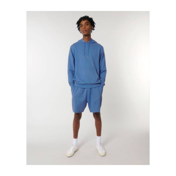 Elegáns uniszex kapucnis pulóver, amely dupla rétegű kapucnival, színben harmonizáló húzózsinórokkal és kenguruzsebbel rendelkezik. Tartós, ikertűs varrással készült, tiszta, kezeletlen természetes nyers pamutból.