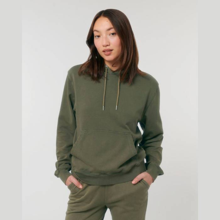 Stílusos megjelenés, két rétegű kapucnival, kenguruzsebbel és vintage mosott hatással rendelkezik. Minden darab egyedi; kövesse a kezelési útmutatót.