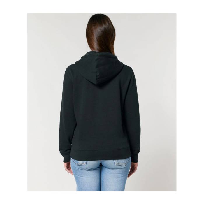 350 g/m² súlyú, bolyhosított polár anyagból készült kapucnis pulóver, dupla rétegű kapucnival, színben harmonizáló húzózsinórokkal és kifogástalan varrással rendelkezik. 100% organikus pamutból készült.