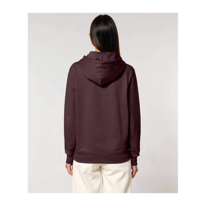 350 g/m² súlyú, bolyhosított polár anyagból készült kapucnis pulóver, dupla rétegű kapucnival, színben harmonizáló húzózsinórokkal és kifogástalan varrással rendelkezik. 100% organikus pamutból készült.
