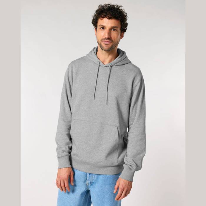 350 g/m² súlyú, bolyhosított polár anyagból készült kapucnis pulóver, dupla rétegű kapucnival, színben harmonizáló húzózsinórokkal és kifogástalan varrással rendelkezik. 100% organikus pamutból készült.