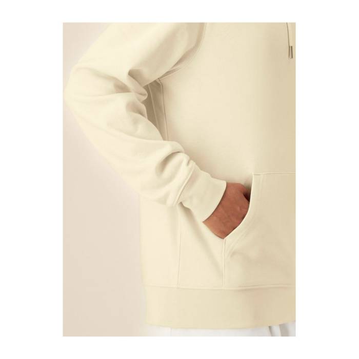 350 g/m² súlyú, bolyhosított polár anyagból készült kapucnis pulóver, dupla rétegű kapucnival, színben harmonizáló húzózsinórokkal és kifogástalan varrással rendelkezik. 100% organikus pamutból készült.