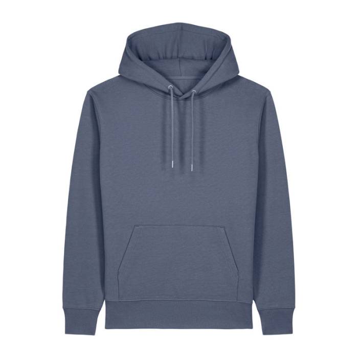 350 g/m² súlyú, bolyhosított polár anyagból készült kapucnis pulóver, dupla rétegű kapucnival, színben harmonizáló húzózsinórokkal és kifogástalan varrással rendelkezik. 100% organikus pamutból készült.