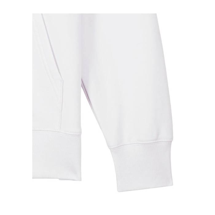 Stílusos, 350 g/m² súlyú, bolyhosított polár kapucnis pulóver modern szabásvonallal, teljes cipzárral és kenguruzsebekkel rendelkezik. 100% organikus pamutból készült.