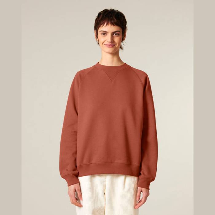 A Knoxer pulóver a vintage stílust képviseli. Ez a 400 g/m²-es organikus pamutból készült darab laza szabásával, V-kivágású gallérjával, bordázott részleteivel és bolyhos belső felületével biztosítja a kényelmet. Ideális választás személyre szabáshoz.