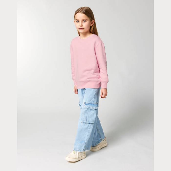 Kiváló minőségű, 300 g/m²-es, kerek nyakú gyerek pulóver, amely 100% organikus pamutból készült. Előmosott, hogy ne zsugorodjon, belül puha, bolyhos anyaggal bélelt. Ideális egyedi emblémázáshoz