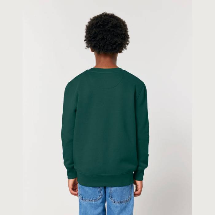 Kiváló minőségű, 300 g/m²-es, kerek nyakú gyerek pulóver, amely 100% organikus pamutból készült. Előmosott, hogy ne zsugorodjon, belül puha, bolyhos anyaggal bélelt. Ideális egyedi emblémázáshoz