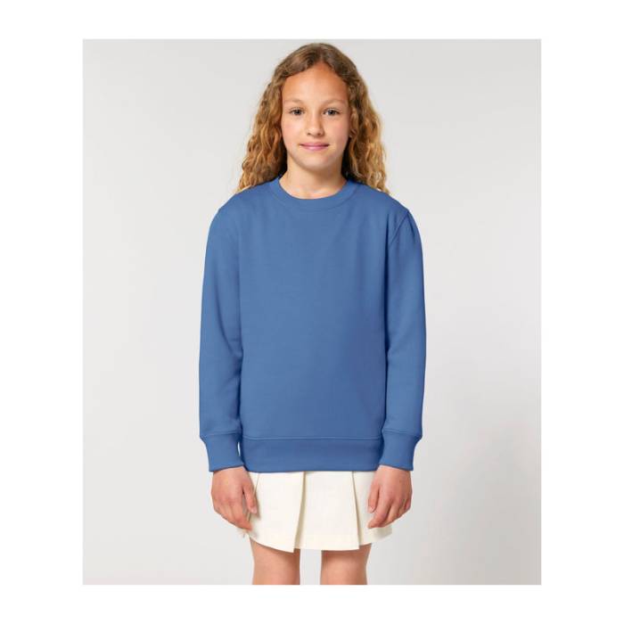 Kiváló minőségű, 300 g/m²-es, kerek nyakú gyerek pulóver, amely 100% organikus pamutból készült. Előmosott, hogy ne zsugorodjon, belül puha, bolyhos anyaggal bélelt. Ideális egyedi emblémázáshoz