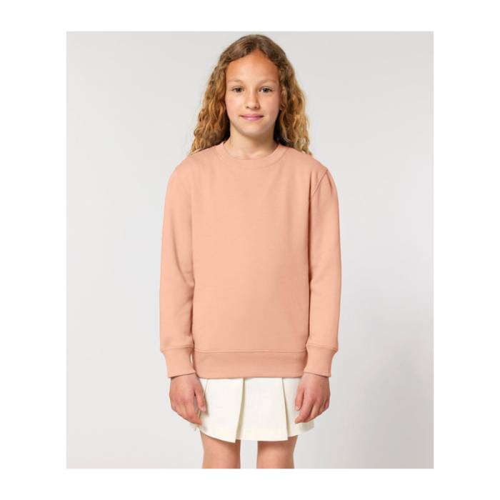 Kiváló minőségű, 300 g/m²-es, kerek nyakú gyerek pulóver, amely 100% organikus pamutból készült. Előmosott, hogy ne zsugorodjon, belül puha, bolyhos anyaggal bélelt. Ideális egyedi emblémázáshoz