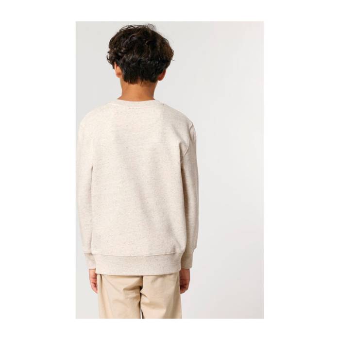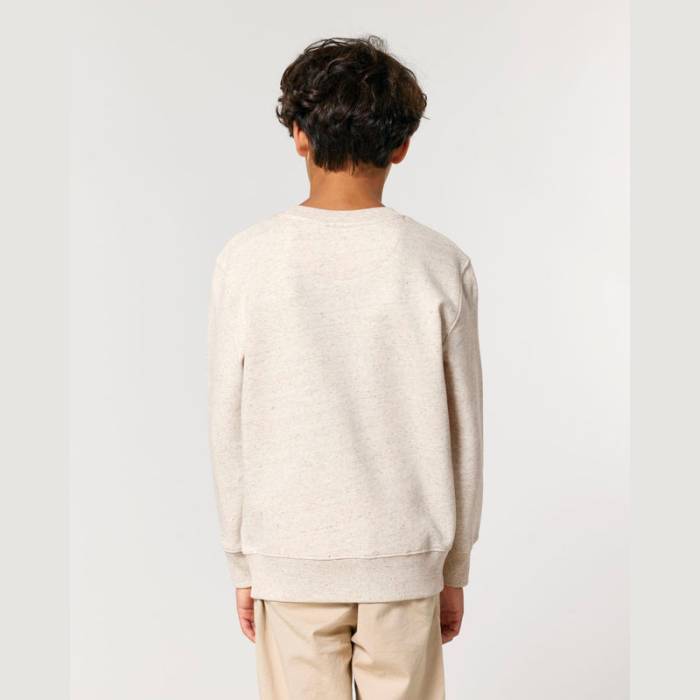 Kiváló minőségű, 300 g/m²-es, kerek nyakú gyerek pulóver, amely 100% organikus pamutból készült. Előmosott, hogy ne zsugorodjon, belül puha, bolyhos anyaggal bélelt. Ideális egyedi emblémázáshoz