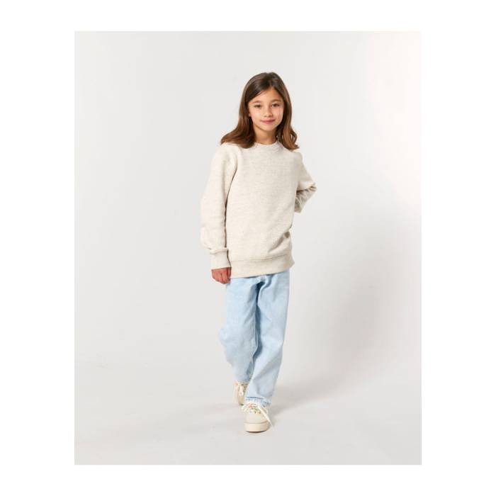 Kiváló minőségű, 300 g/m²-es, kerek nyakú gyerek pulóver, amely 100% organikus pamutból készült. Előmosott, hogy ne zsugorodjon, belül puha, bolyhos anyaggal bélelt. Ideális egyedi emblémázáshoz
