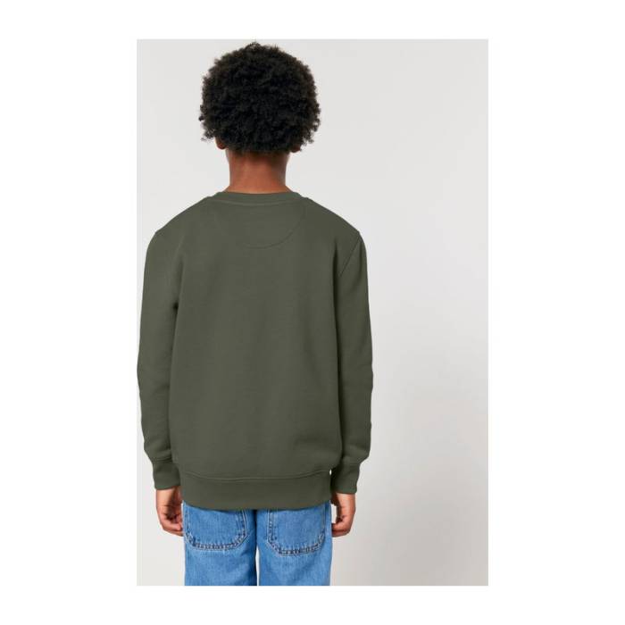 Kiváló minőségű, 300 g/m²-es, kerek nyakú gyerek pulóver, amely 100% organikus pamutból készült. Előmosott, hogy ne zsugorodjon, belül puha, bolyhos anyaggal bélelt. Ideális egyedi emblémázáshoz