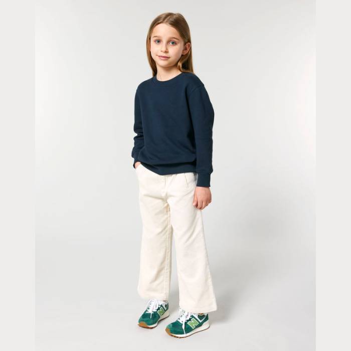 Kiváló minőségű, 300 g/m²-es, kerek nyakú gyerek pulóver, amely 100% organikus pamutból készült. Előmosott, hogy ne zsugorodjon, belül puha, bolyhos anyaggal bélelt. Ideális egyedi emblémázáshoz