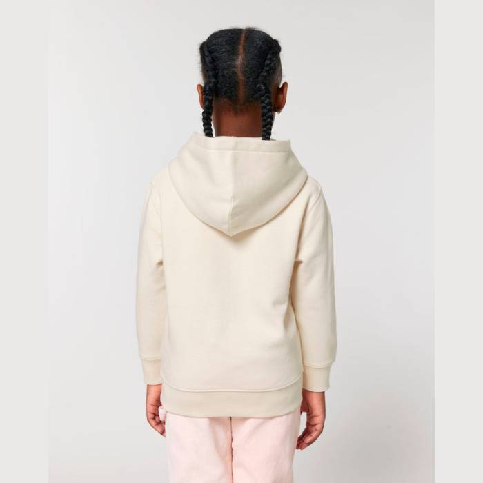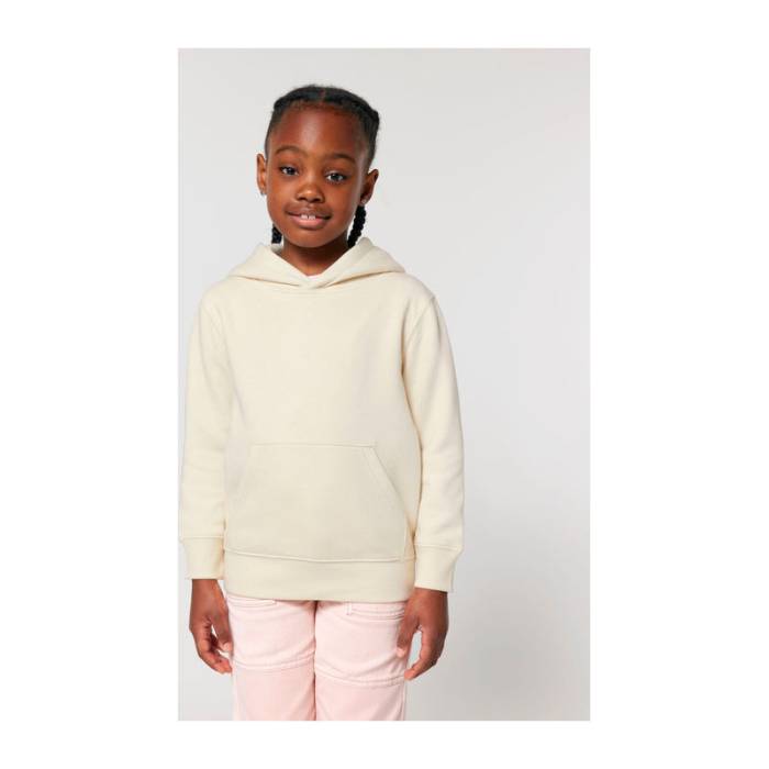 Prémium minőségű, 300 g/m² organikus pamutból készült gyermek kapucnis pulóver, amely dupla bélésű kapucnival, kenguruzsebbel és puha, bolyhos belsővel rendelkezik. Ideális választás családi összeöltözéshez, kiváló emblémázási lehetőségekkel.
