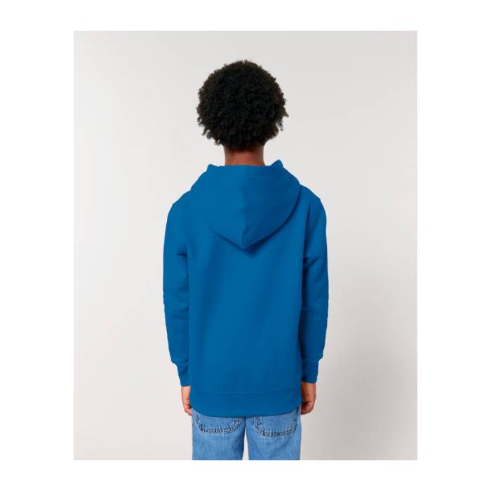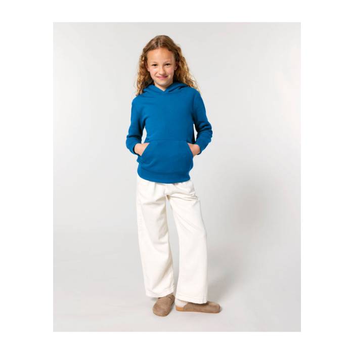 Prémium minőségű, 300 g/m² organikus pamutból készült gyermek kapucnis pulóver, amely dupla bélésű kapucnival, kenguruzsebbel és puha, bolyhos belsővel rendelkezik. Ideális választás családi összeöltözéshez, kiváló emblémázási lehetőségekkel.