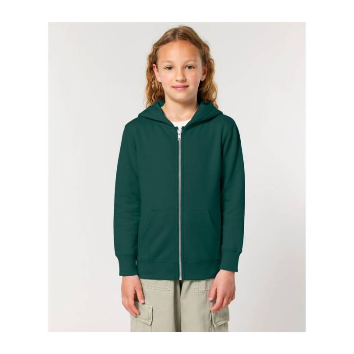300 g/m² súlyú gyerek kapucnis pulóver kenguruzsebekkel, fém cipzárral és prémium minőségű, dupla bélésű kapucnival. 100% organikus pamutból készült, előmosott, hogy ne zsugorodjon, és tökéletes egyedi emblémázáshoz.