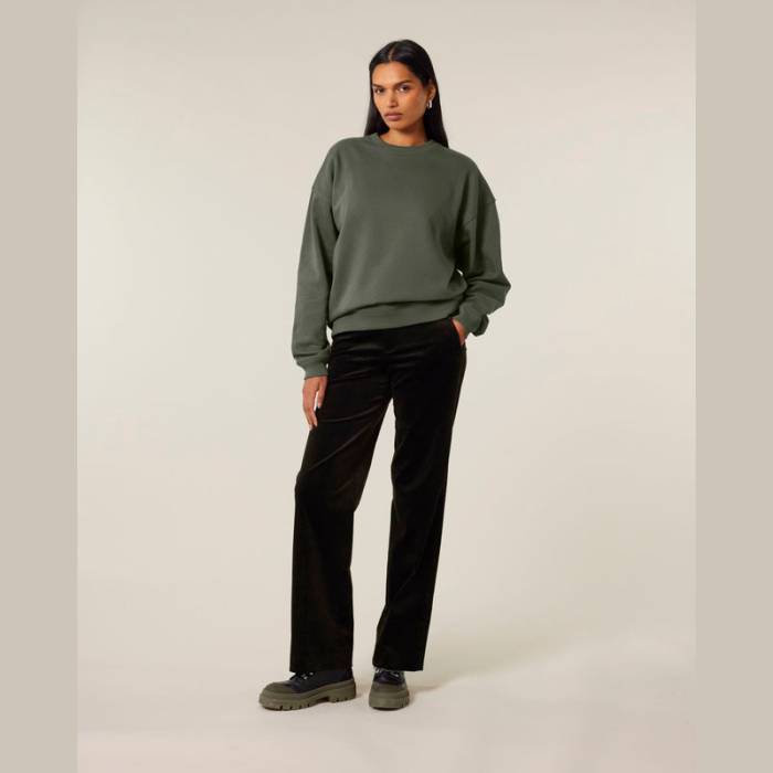 Prémium minőségű, 350 g/m² súlyú, oversized fazonú, kerek nyakú pulóver, modern szabásvonallal. 100% organikus pamutból készült, belül bolyhosított felülettel. Ideális egyedi emblémázáshoz.