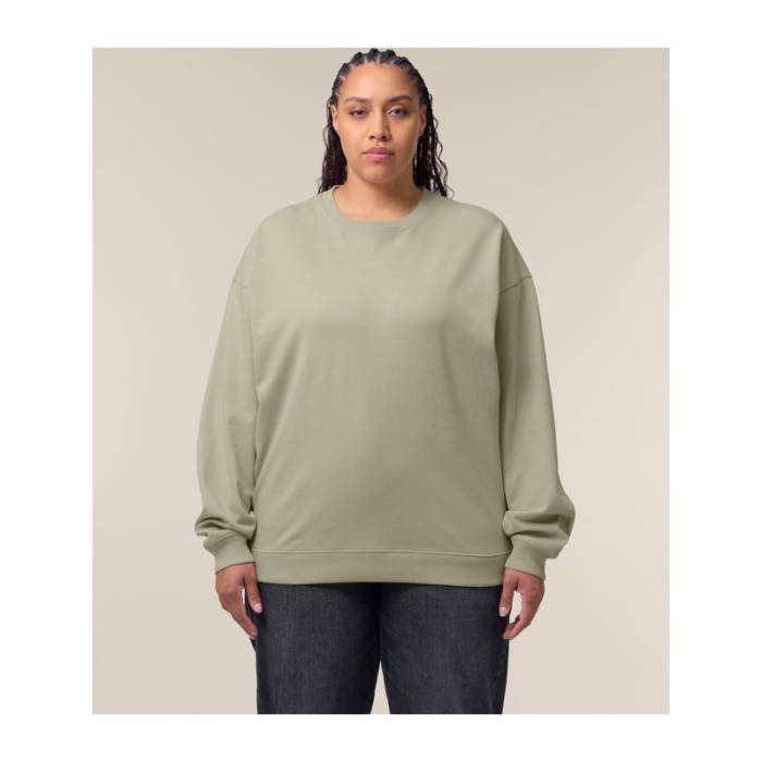 Prémium minőségű, 350 g/m² súlyú, oversized fazonú, kerek nyakú pulóver, modern szabásvonallal. 100% organikus pamutból készült, belül bolyhosított felülettel. Ideális egyedi emblémázáshoz.