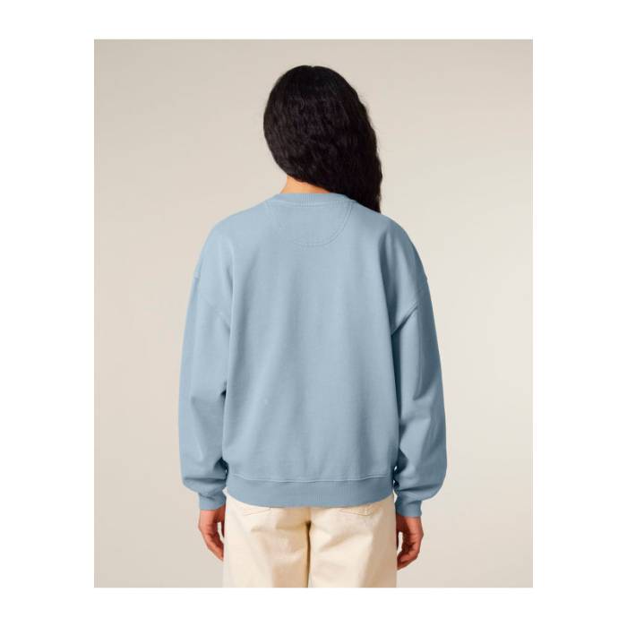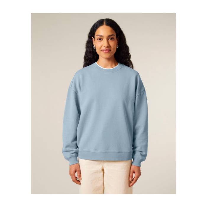 Prémium minőségű, túlméretezett, kerek nyakú pulóver, 100% organikus pamutból, 350 g/m² súlyú anyagból, amely egyedi vintage megjelenést biztosít. Kényelmes, bolyhos belső kialakítás, ideális egyedi emblémázáshoz.