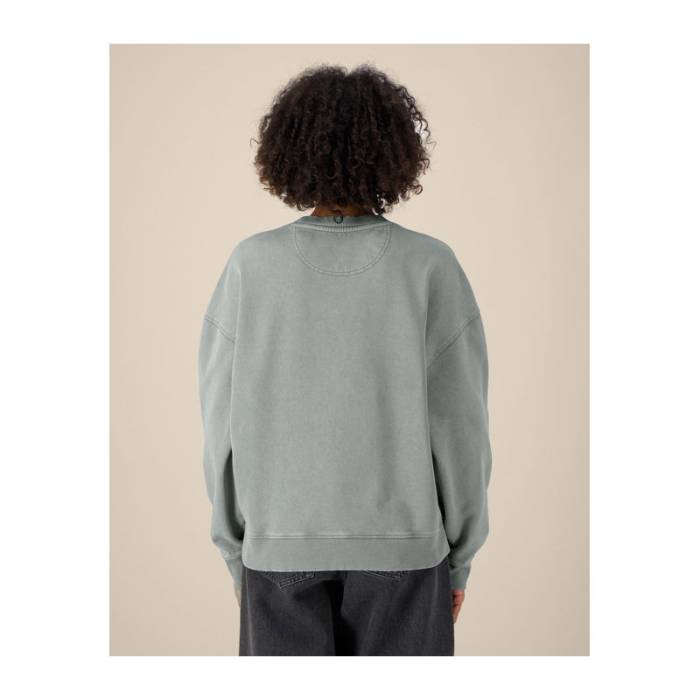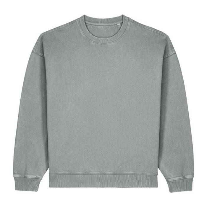 Prémium minőségű, túlméretezett, kerek nyakú pulóver, 100% organikus pamutból, 350 g/m² súlyú anyagból, amely egyedi vintage megjelenést biztosít. Kényelmes, bolyhos belső kialakítás, ideális egyedi emblémázáshoz.