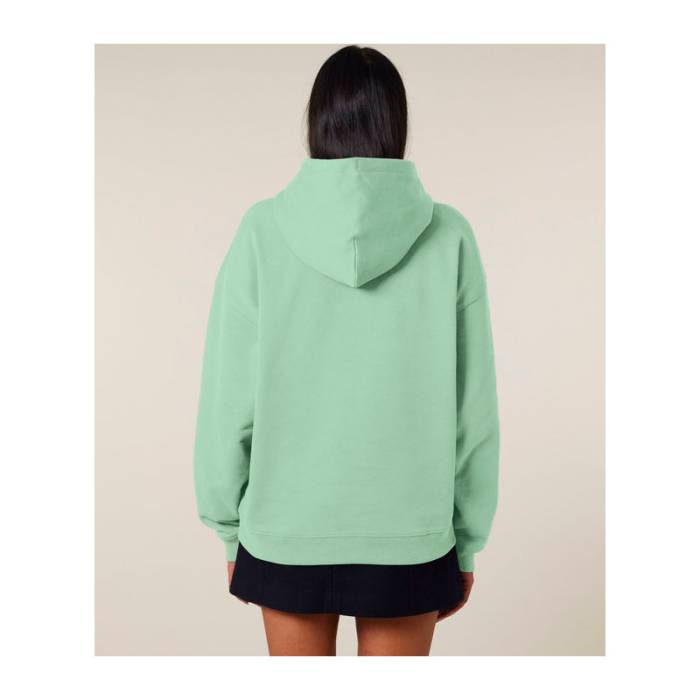 Prémium minőségű, 350 g/m² súlyú oversized kapucnis pulóver, 100% organikus pamutból. Kettős rétegű kapucnival, kenguruzsebbel.