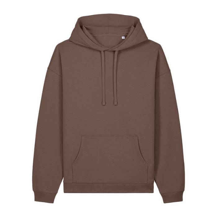 Prémium minőségű, 350 g/m² súlyú oversized kapucnis pulóver, 100% organikus pamutból. Kettős rétegű kapucnival, kenguruzsebbel.