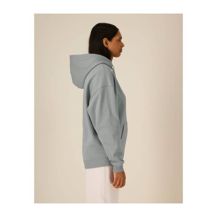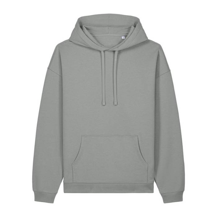 Prémium minőségű, 350 g/m² súlyú oversized kapucnis pulóver, 100% organikus pamutból. Kettős rétegű kapucnival, kenguruzsebbel.