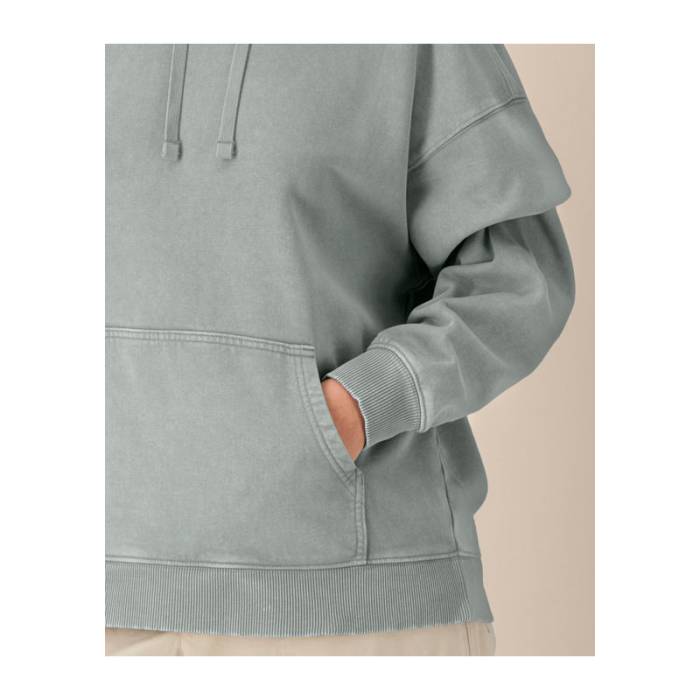 350 g/m² anyagú, prémium minőségű, vintage stílusú oversized kapucnis pulóver, amely 100% organikus pamutból készült, hogy egyedi megjelenést biztosítson. Kényelmes, bolyhos belső kialakításának köszönhetően ideális választás a környezettudatos egyedi ruházat kedvelőinek.
