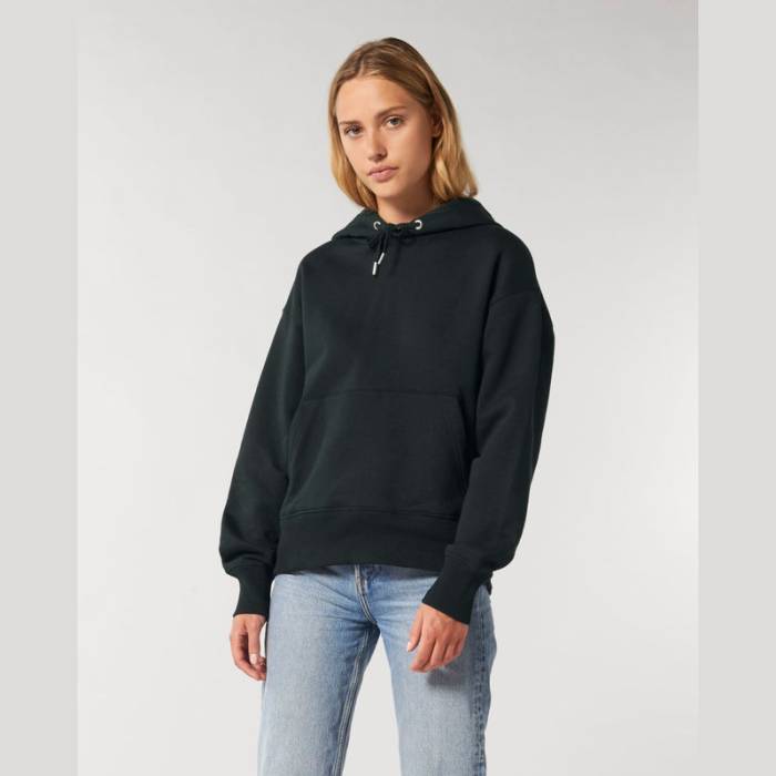 Elegáns uniszex kapucnis pulóver, amely laza szabásával hódít. Kettős rétegű kapucnival, színben harmonizáló húzózsinórokkal és praktikus kenguruzsebbel rendelkezik. Kezeletlen, festetlen pamutból készült, hogy természetes megjelenést biztosítson.