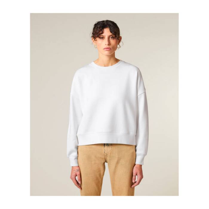 A Stella Alma egy elegáns, 300 g/m² súlyú, organikus pamutból készült pulóver, amely leejtett vállmegoldásával kiemeli az alakot. Kiválóan alkalmas személyre szabásra, puha tapintású és széles színválasztékban elérhető.