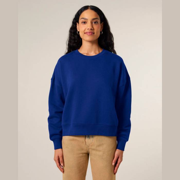 A Stella Alma egy elegáns, 300 g/m² súlyú, organikus pamutból készült pulóver, amely leejtett vállmegoldásával kiemeli az alakot. Kiválóan alkalmas személyre szabásra, puha tapintású és széles színválasztékban elérhető.