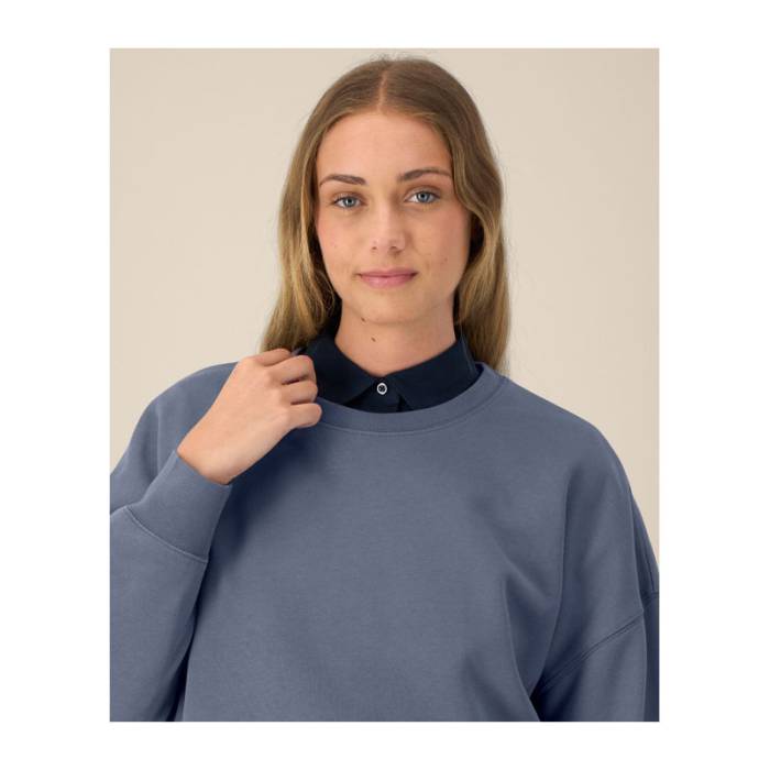 A Stella Alma egy elegáns, 300 g/m² súlyú, organikus pamutból készült pulóver, amely leejtett vállmegoldásával kiemeli az alakot. Kiválóan alkalmas személyre szabásra, puha tapintású és széles színválasztékban elérhető.