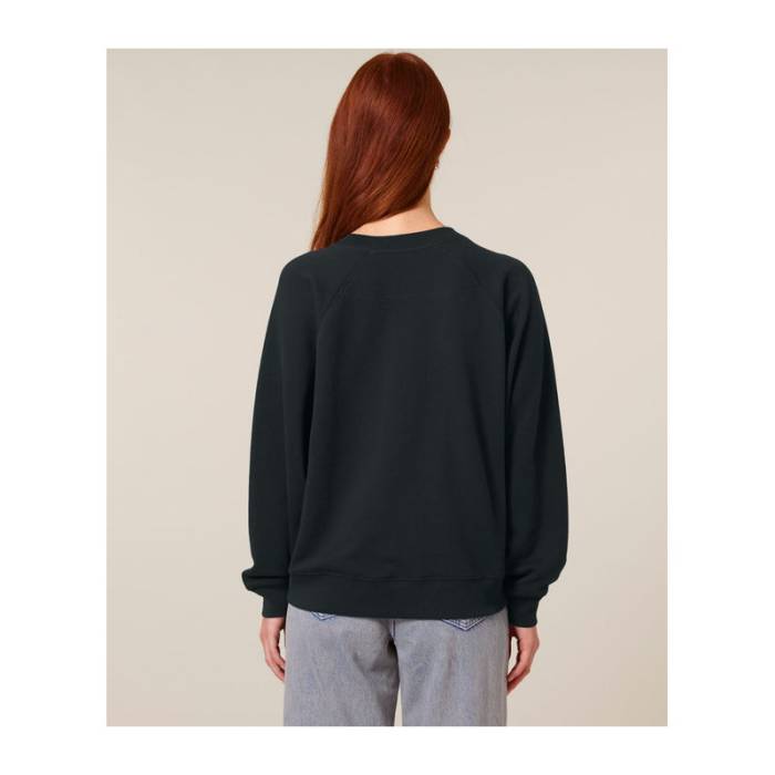 Prémium minőségű, 300 g/m² organikus pamutból készült pulóver, amely raglán ujjaival idézi a klasszikus sportos stílust. Kiemeli az alakot, nőies nyakkivágással rendelkezik. Ideális mindennapi viselethez és egyedi mintákhoz.