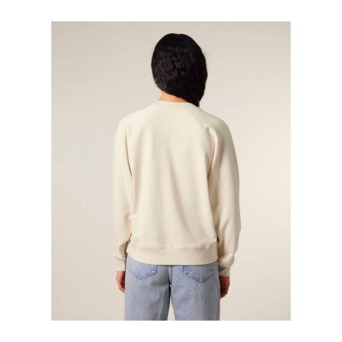 Prémium minőségű, 300 g/m² organikus pamutból készült pulóver, amely raglán ujjaival idézi a klasszikus sportos stílust. Kiemeli az alakot, nőies nyakkivágással rendelkezik. Ideális mindennapi viselethez és egyedi mintákhoz.