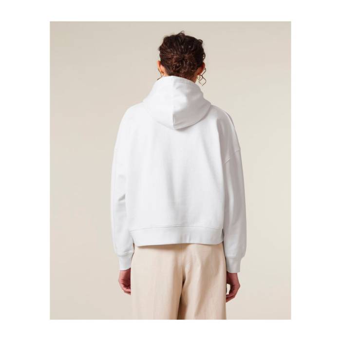 Prémium minőségű női kapucnis pulóver, amely letisztult megjelenést biztosít a leengedett vállrészekkel és finom részletekkel.100% organikus pamutból készült, 300 g/m² súlyú anyag, amely tökéletesen alkalmas egyedi emblémázáshoz.
