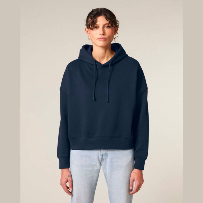 Prémium minőségű női kapucnis pulóver, amely letisztult megjelenést biztosít a leengedett vállrészekkel és finom részletekkel.100% organikus pamutból készült, 300 g/m² súlyú anyag, amely tökéletesen alkalmas egyedi emblémázáshoz.