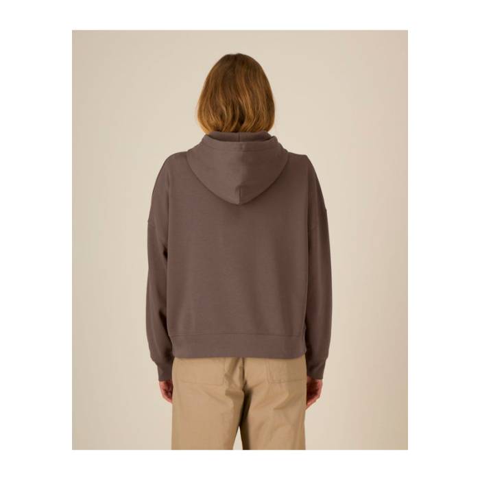 Prémium minőségű női kapucnis pulóver, amely letisztult megjelenést biztosít a leengedett vállrészekkel és finom részletekkel.100% organikus pamutból készült, 300 g/m² súlyú anyag, amely tökéletesen alkalmas egyedi emblémázáshoz.