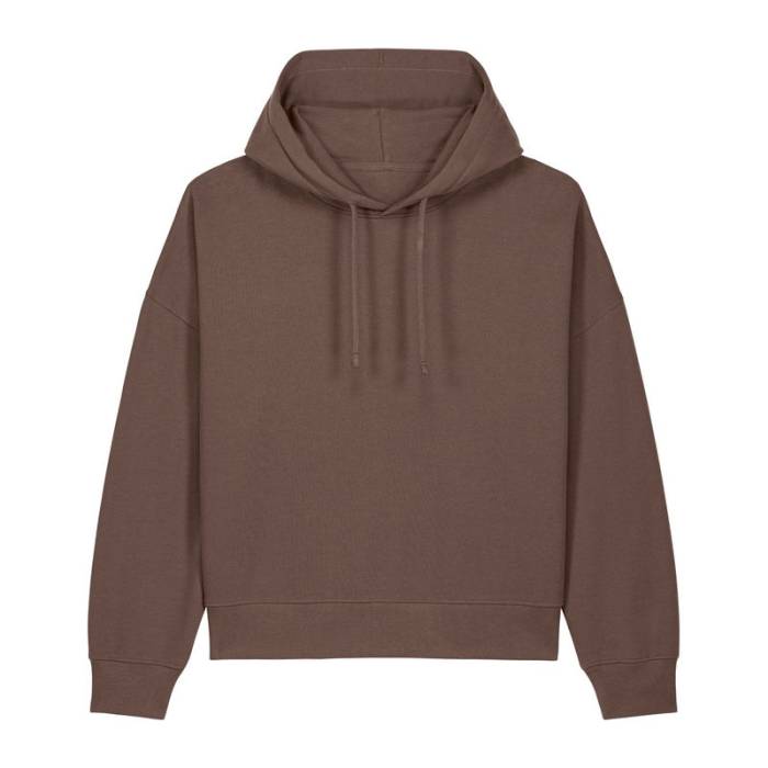 Prémium minőségű női kapucnis pulóver, amely letisztult megjelenést biztosít a leengedett vállrészekkel és finom részletekkel.100% organikus pamutból készült, 300 g/m² súlyú anyag, amely tökéletesen alkalmas egyedi emblémázáshoz.