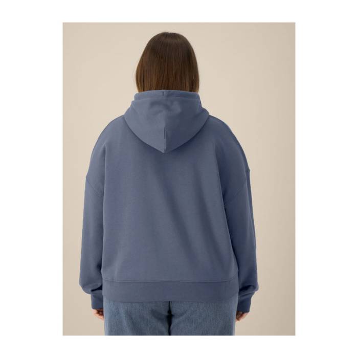 Prémium minőségű női kapucnis pulóver, amely letisztult megjelenést biztosít a leengedett vállrészekkel és finom részletekkel.100% organikus pamutból készült, 300 g/m² súlyú anyag, amely tökéletesen alkalmas egyedi emblémázáshoz.
