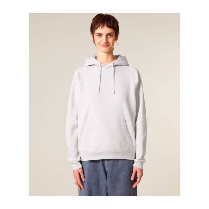 Retro stílusú, uniszex kapucnis pulóver raglán ujjakkal, dupla rétegű kapucnival és kenguruzsebbel. 100% organikus pamutból készült, 400 g/m² súlyú anyagból, amely kényelmes és laza viseletet biztosít. Kiválóan alkalmas személyre szabásra.