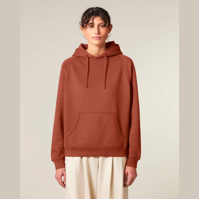 Retro stílusú, uniszex kapucnis pulóver raglán ujjakkal, dupla rétegű kapucnival és kenguruzsebbel. 100% organikus pamutból készült, 400 g/m² súlyú anyagból, amely kényelmes és laza viseletet biztosít. Kiválóan alkalmas személyre szabásra.
