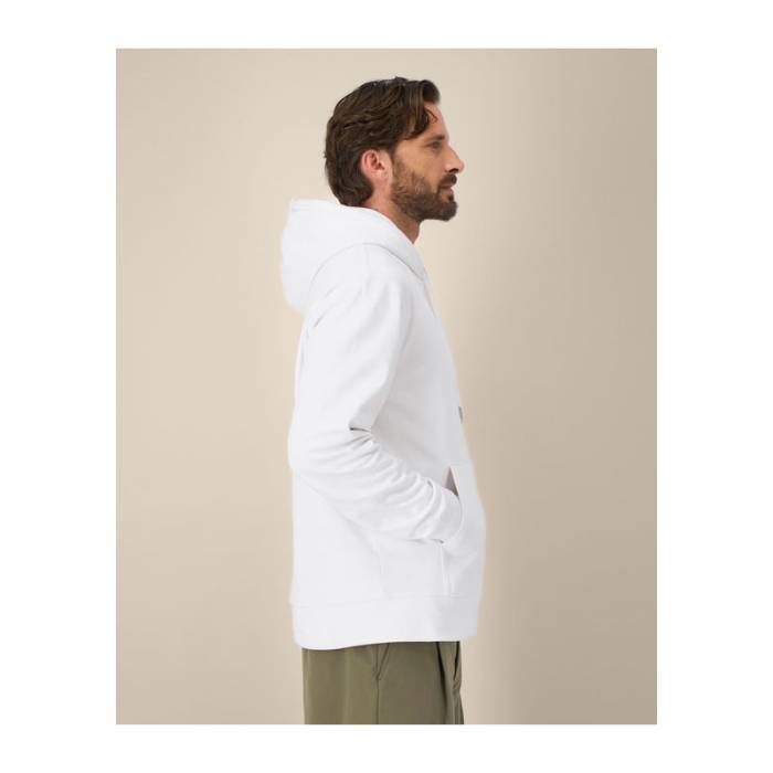 A The Gamechanger egy puha, újrahasznosított pamutkeverékből készült kapucnis pulóver. Klasszikus szabásának és letisztult dizájnjának köszönhetően ideális céges arculati terméknek, üzleti viseletnek vagy prémium hétköznapi darabnak. A kétrétegű kapucni kerek húzózsinórral, a kenguru zseb és a hímzett zsinórvezető lyukak igényes kidolgozást biztosítanak. 1x1-es bordás passzékkal, tartós ikertűs tűzéssel, valamint belső nyakszalaggal és félhold alakú tarkóbetéttel készül a extra kényelemért. Ez a környezetbarát pulóver ötvözi a minőséget és a funkcionalitást; kiváló nyomtathatósága miatt a The Gamechanger egy megbízható alapdarab tartós viseletre tervezve.
