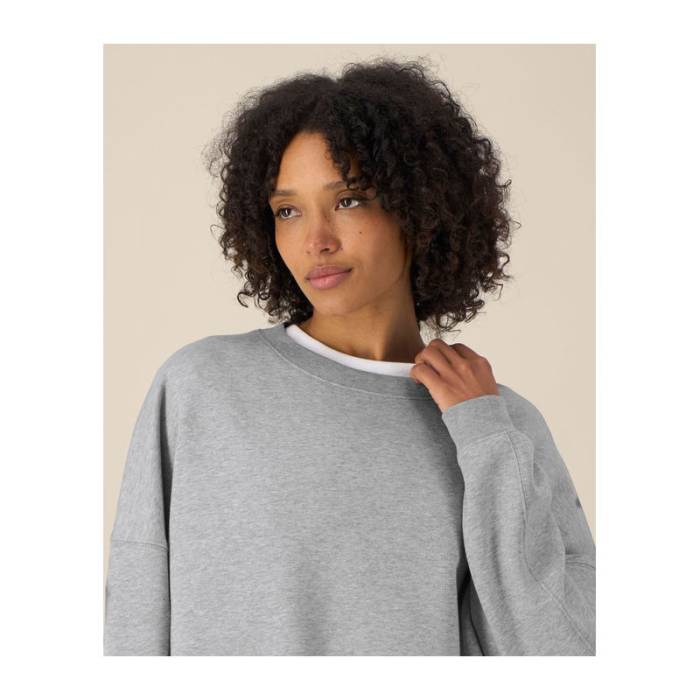 A The Stella Lianna egy sima felületű bio pamut-TENCEL™ Modal keverékből készült női kereknyakú pulóver. Puha tapintást, légáteresztő kényelmet és lezser szabást biztosít. Természetes lágy esésével és nőies formájával könnyed viselet, miközben az ikertűs tűzés és az előrehelyezett oldalvarrások megőrzik a ruhadarab szerkezetét. A 1x1-es bordás kötés a nyaknál és a szegélyeken finom textúrát ad, a belső halszálka mintás nyakszalag pedig teljessé teszi a prémium kidolgozást. Ez a trendi felső könnyű, mégis otthonos, tökéletes választás olyan kollekciókhoz, ahol a puhaság és a kiváló nyomtathatóság a fő szempont.