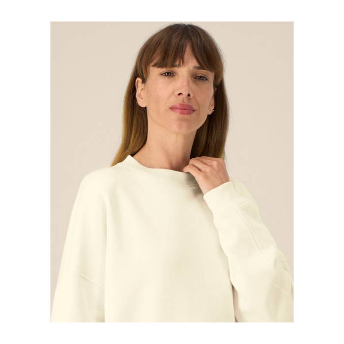 A The Stella Lianna egy sima felületű bio pamut-TENCEL™ Modal keverékből készült női kereknyakú pulóver. Puha tapintást, légáteresztő kényelmet és lezser szabást biztosít. Természetes lágy esésével és nőies formájával könnyed viselet, miközben az ikertűs tűzés és az előrehelyezett oldalvarrások megőrzik a ruhadarab szerkezetét. A 1x1-es bordás kötés a nyaknál és a szegélyeken finom textúrát ad, a belső halszálka mintás nyakszalag pedig teljessé teszi a prémium kidolgozást. Ez a trendi felső könnyű, mégis otthonos, tökéletes választás olyan kollekciókhoz, ahol a puhaság és a kiváló nyomtathatóság a fő szempont.