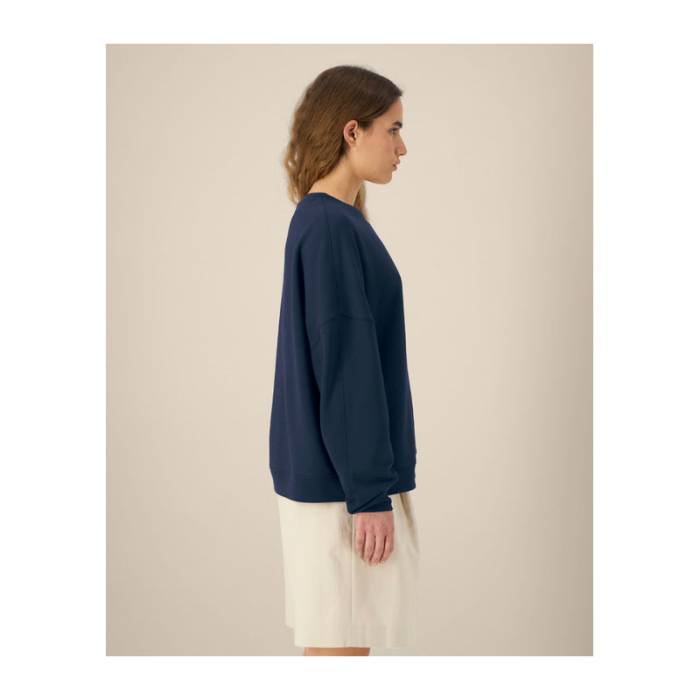A The Stella Lianna egy sima felületű bio pamut-TENCEL™ Modal keverékből készült női kereknyakú pulóver. Puha tapintást, légáteresztő kényelmet és lezser szabást biztosít. Természetes lágy esésével és nőies formájával könnyed viselet, miközben az ikertűs tűzés és az előrehelyezett oldalvarrások megőrzik a ruhadarab szerkezetét. A 1x1-es bordás kötés a nyaknál és a szegélyeken finom textúrát ad, a belső halszálka mintás nyakszalag pedig teljessé teszi a prémium kidolgozást. Ez a trendi felső könnyű, mégis otthonos, tökéletes választás olyan kollekciókhoz, ahol a puhaság és a kiváló nyomtathatóság a fő szempont.