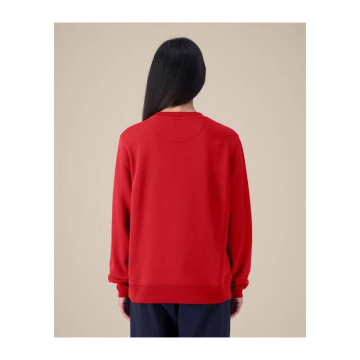 A The Stella Thinker egy puha, újrahasznosított pamutkeverékből készült női pulóver. Letisztult szabása és puha tapintása hosszantartó kényelmet és mindennapi sokoldalúságot kínál. Üzleti viseletnek, lifestyle márkákhoz és brandingelt kollekciókhoz tervezték; bevarrt ujjakkal, bordás passzékkal és ikertűs tűzéssel készült az alaktartás érdekében. A belső halszálka mintás nyakszalag és a félhold alakú tarkóbetét finom belső részleteket adnak. Ez a fenntartható pulóver sima és megbízható alapot nyújt hímzéshez vagy nyomtatáshoz – ideális céges logózáshoz és környezetbarát kollekciókhoz.