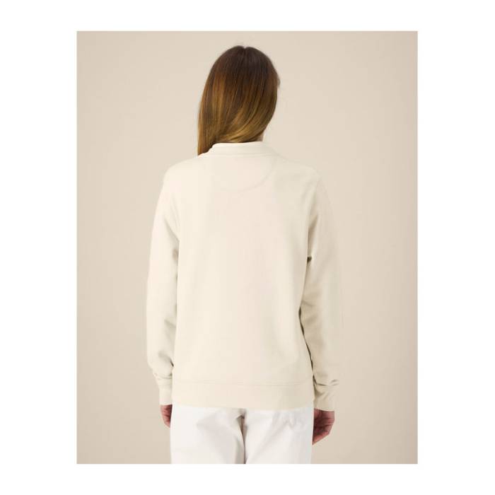 A The Stella Thinker egy puha, újrahasznosított pamutkeverékből készült női pulóver. Letisztult szabása és puha tapintása hosszantartó kényelmet és mindennapi sokoldalúságot kínál. Üzleti viseletnek, lifestyle márkákhoz és brandingelt kollekciókhoz tervezték; bevarrt ujjakkal, bordás passzékkal és ikertűs tűzéssel készült az alaktartás érdekében. A belső halszálka mintás nyakszalag és a félhold alakú tarkóbetét finom belső részleteket adnak. Ez a fenntartható pulóver sima és megbízható alapot nyújt hímzéshez vagy nyomtatáshoz – ideális céges logózáshoz és környezetbarát kollekciókhoz.