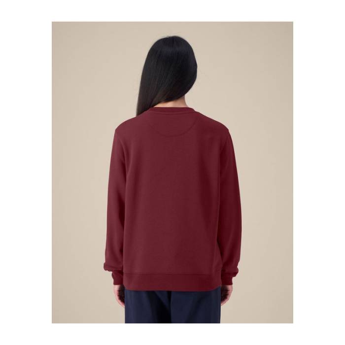 A The Stella Thinker egy puha, újrahasznosított pamutkeverékből készült női pulóver. Letisztult szabása és puha tapintása hosszantartó kényelmet és mindennapi sokoldalúságot kínál. Üzleti viseletnek, lifestyle márkákhoz és brandingelt kollekciókhoz tervezték; bevarrt ujjakkal, bordás passzékkal és ikertűs tűzéssel készült az alaktartás érdekében. A belső halszálka mintás nyakszalag és a félhold alakú tarkóbetét finom belső részleteket adnak. Ez a fenntartható pulóver sima és megbízható alapot nyújt hímzéshez vagy nyomtatáshoz – ideális céges logózáshoz és környezetbarát kollekciókhoz.